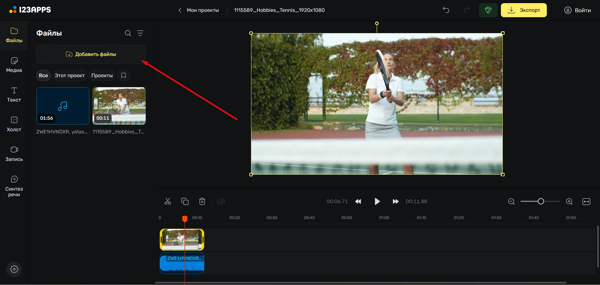 - Кликните «Импорт медиа» и загрузите в сервис нужные MP3 и MP4 материалы.