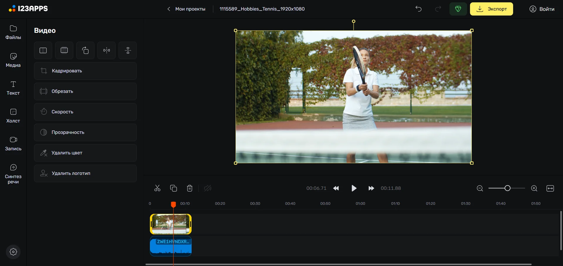 Это сервис, в котором собраны различные инструменты для изменения видеозаписей. В 123apps вы можете найти наложение текста, изменение веса, кадрирование и отражение, даже синтез речи с помощью нейросети. Внутри нет общего интерфейса, поэтому для полноценной обработки нужно будет последовательно переходить от одной функции к другой. Сайт работает бесплатно, без скачивания и регистрации.