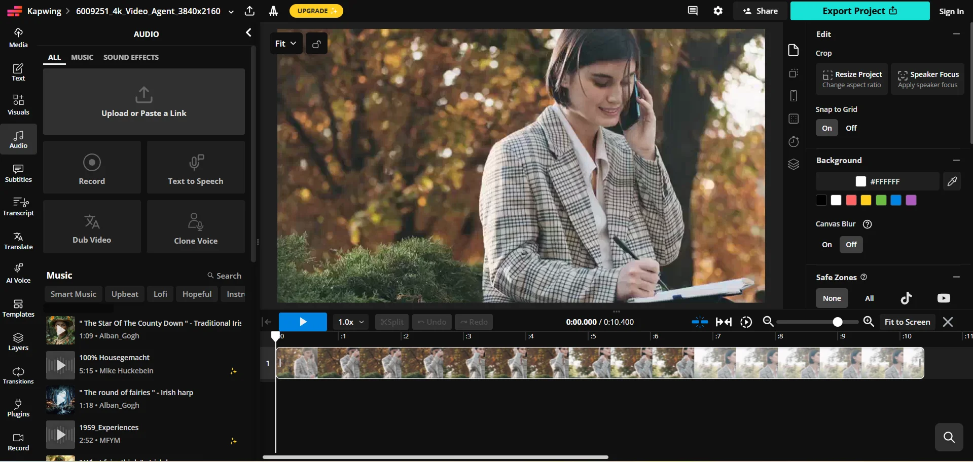 Это онлайн-сервис для монтажа, ориентированный на быстрое создание контента для социальных сетей. Интерфейс Kapwing простой и интуитивный — подойдет даже новичкам. Пользователи могут обрезать видеоролик, вставить в него текст, субтитры, фильтры, менять размер под разные платформы и даже совместно редактировать работу. Бесплатная версия работает с ограничениями: накладывает водяной знак, позволяет обрабатывать не более 7 минут контента и выгружает в качестве до 720p.