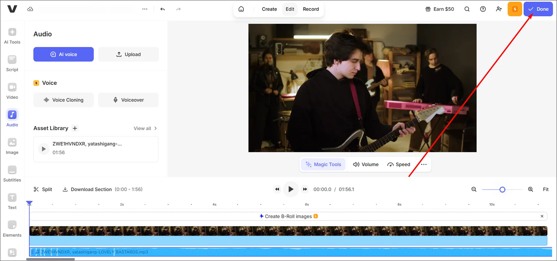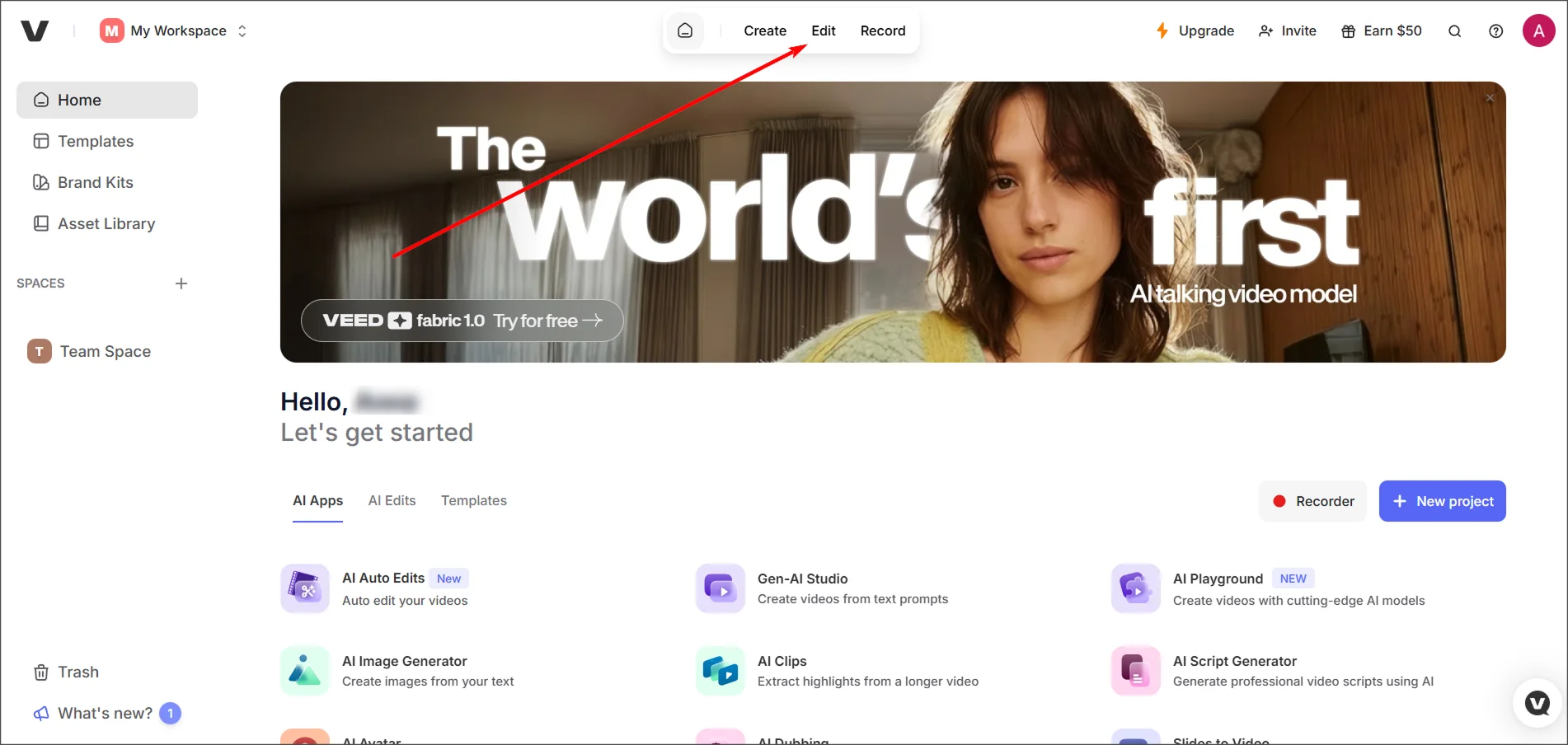 - Перед тем, как поставить музыку на видео, пройдите регистрацию и на главной странице профиля щелкните «Edit».