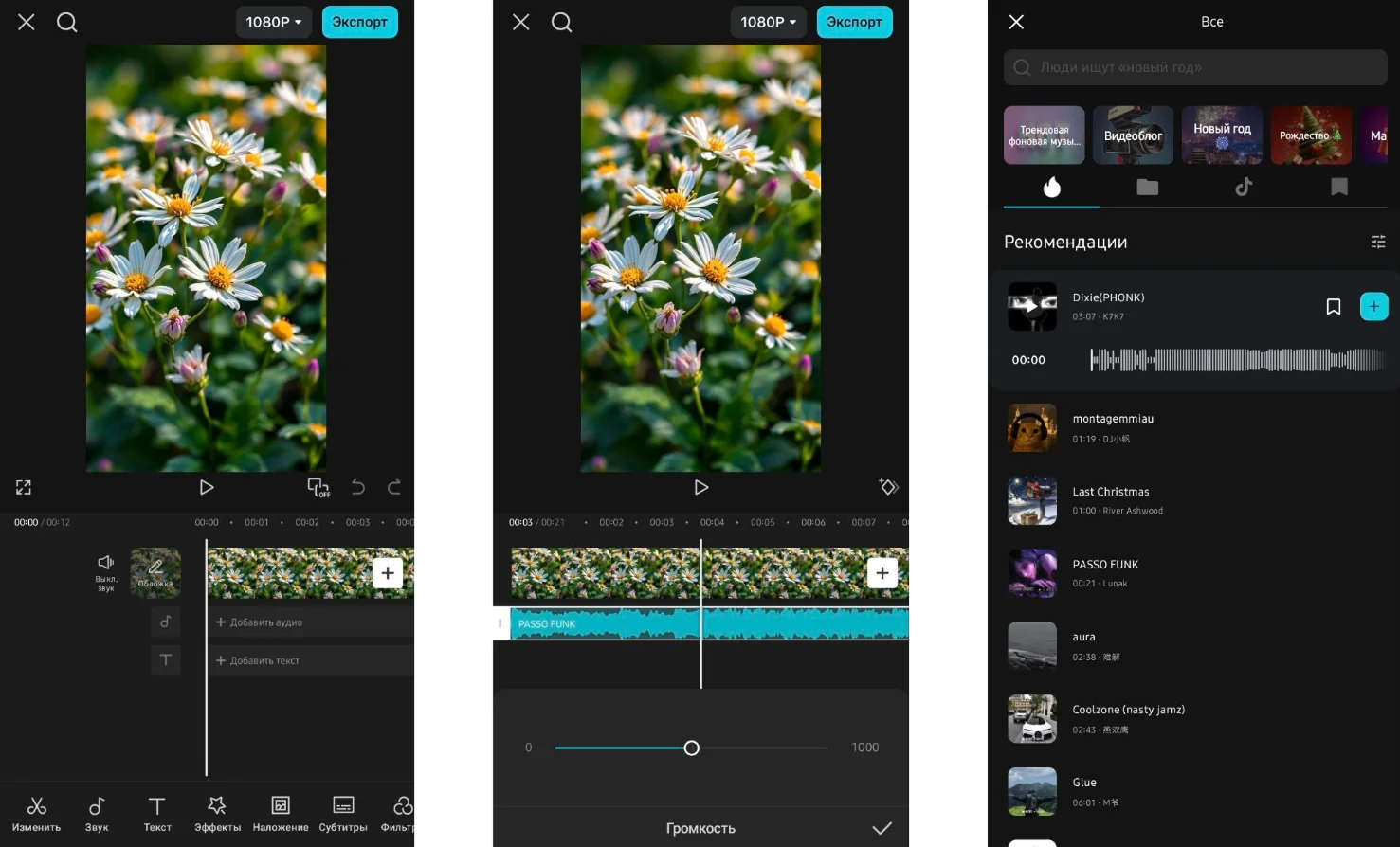 Еще можно получить любую мелодию через CapCut через готовую запись экрана. Такой способ часто используется при монтаже роликов для контента — это бывает проще, чем скачивать музыкальный файл через сторонние сервисы.