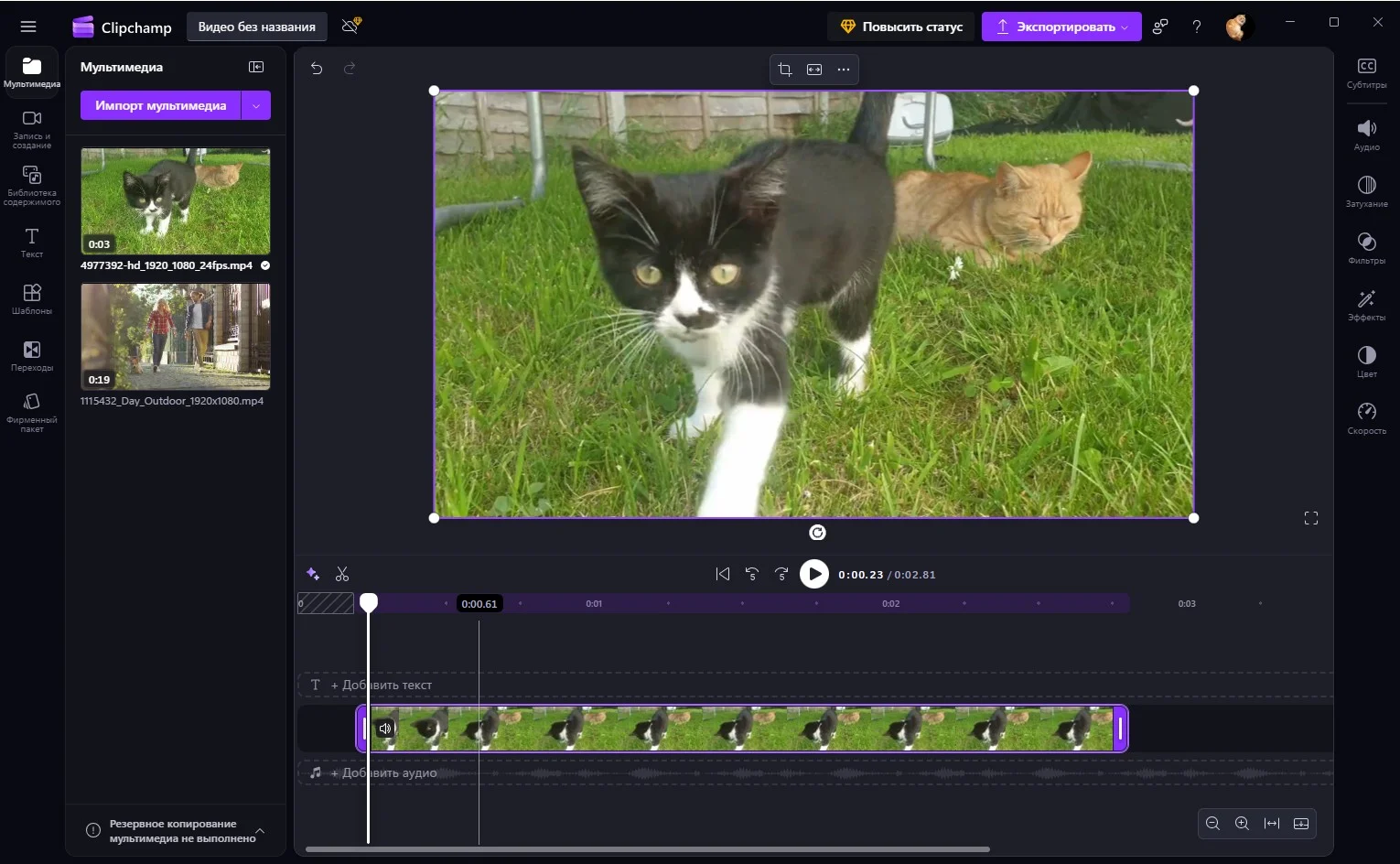 - Щелкните на «Экспорт», чтобы скачать готовый ролик.