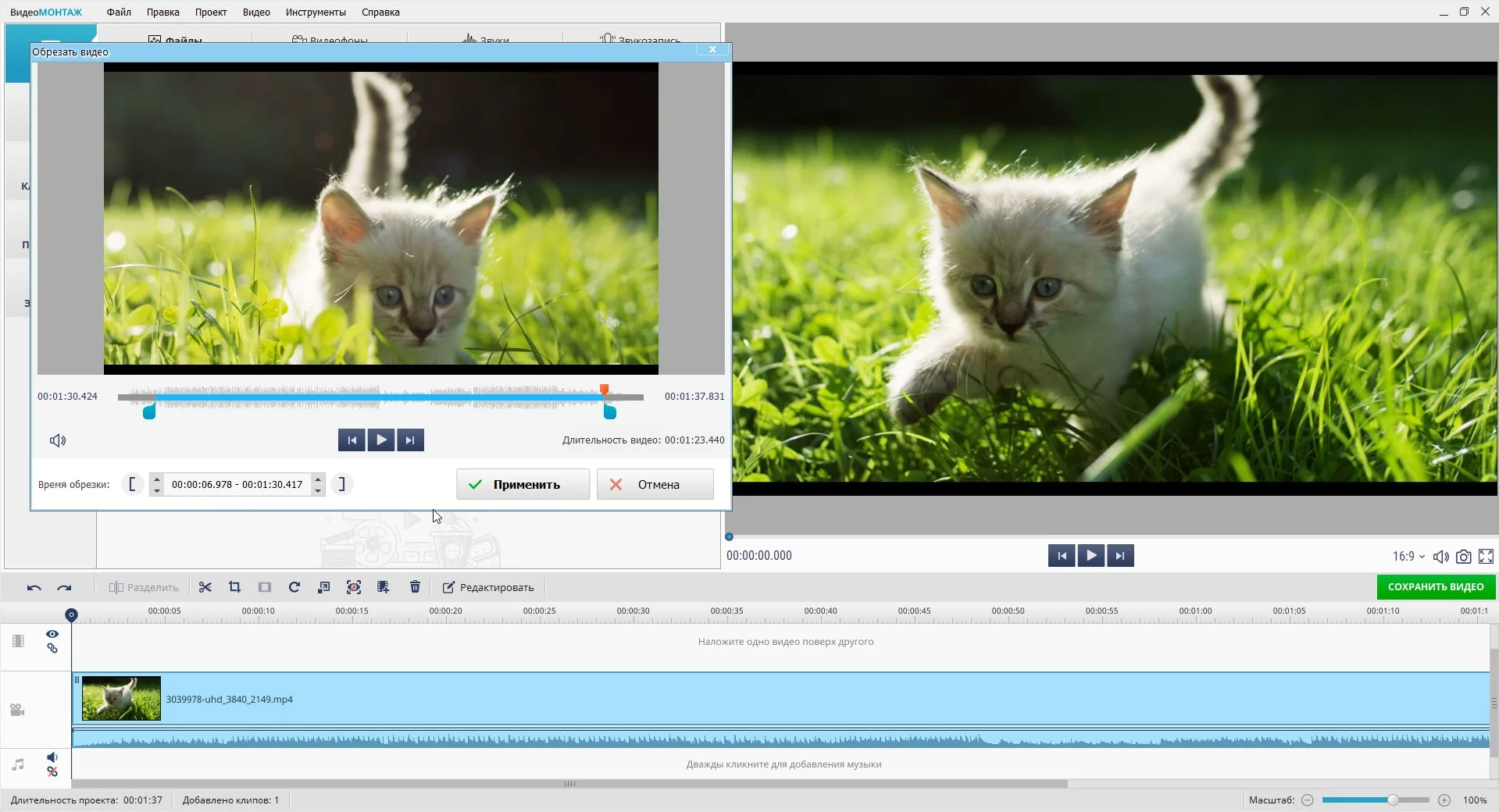 Более подробно о том, как обрезать видео на ПК с помощью ВидеоМОНТАЖа, вы узнаете из наглядной инструкции: