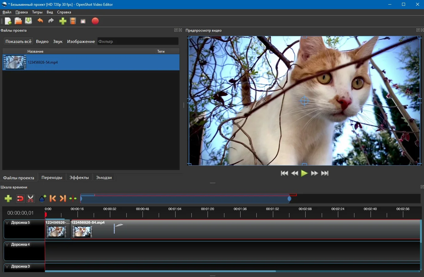 - Перетяните миниатюру из окна библиотеки файлов проекта на дорожку.