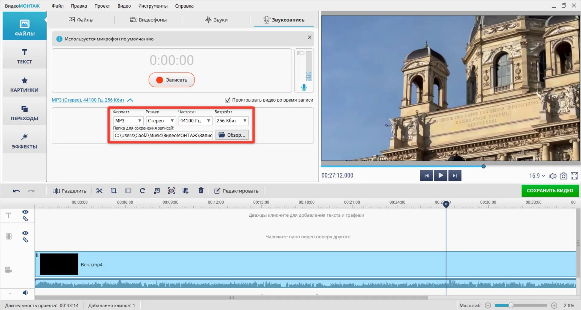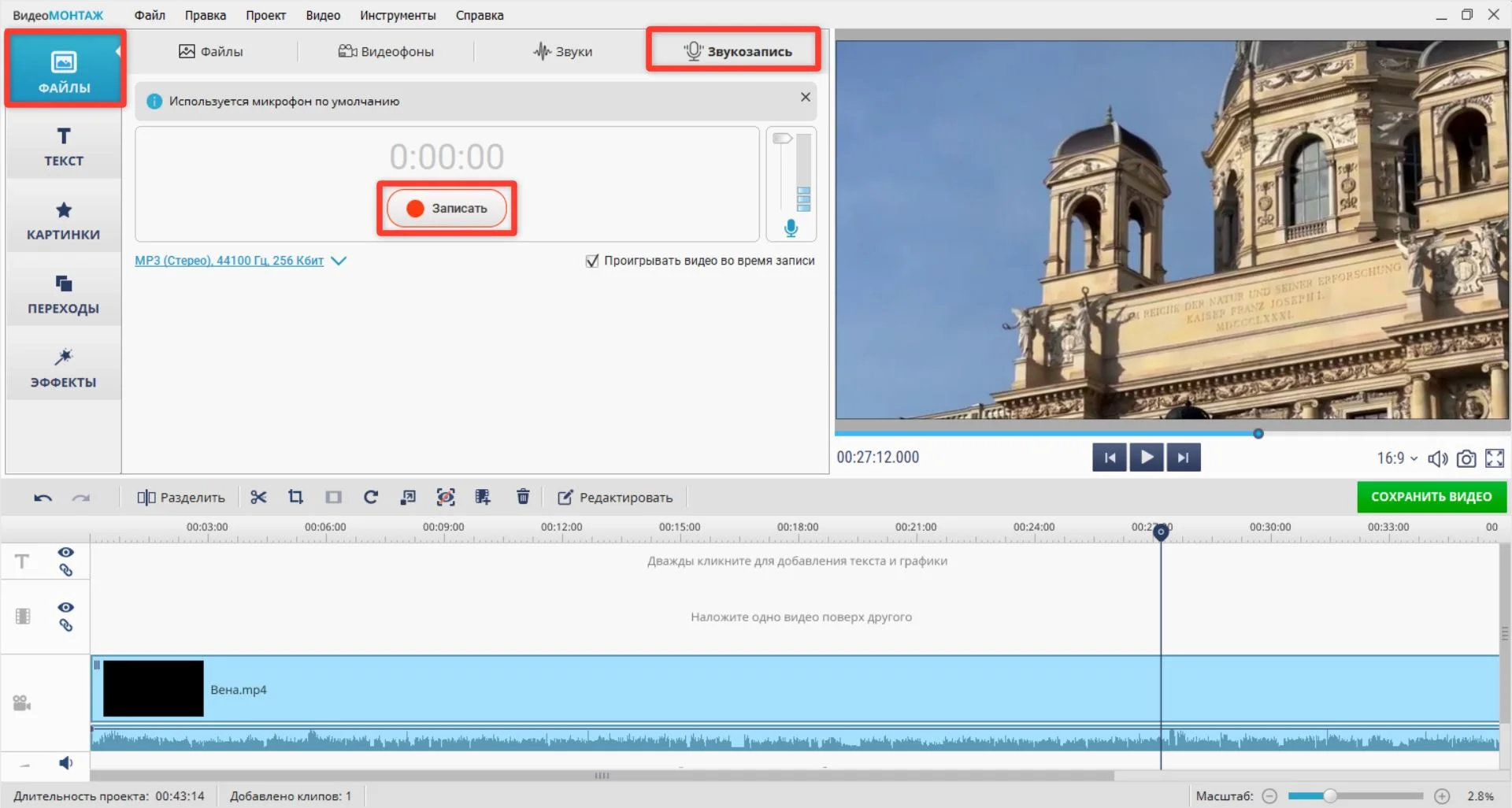 Если вам нужно что-то эффективное для работы со звуком на компьютере, обратите внимание на ВидеоМОНТАЖ. Программа объединяет все необходимое в одном окне: запись через микрофон, библиотеку музыки, регулировку громкости и наложение аудиоэффектов. Русский интерфейс и простая логика работы позволяют создать качественную работу даже без опыта в монтаже.