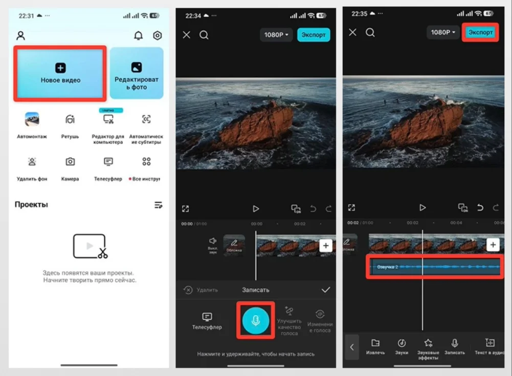 В мобильных приложениях можно записаться своим голосом через встроенный микрофон телефона. Все это делается на одном экране с помощью простого интерфейса. Разберем 2 популярных редактора для iOS и Android.