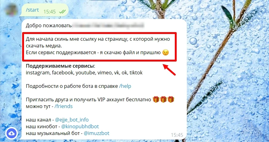 - Запустите SaveFromVkBot и щелкните кнопку «Старт».