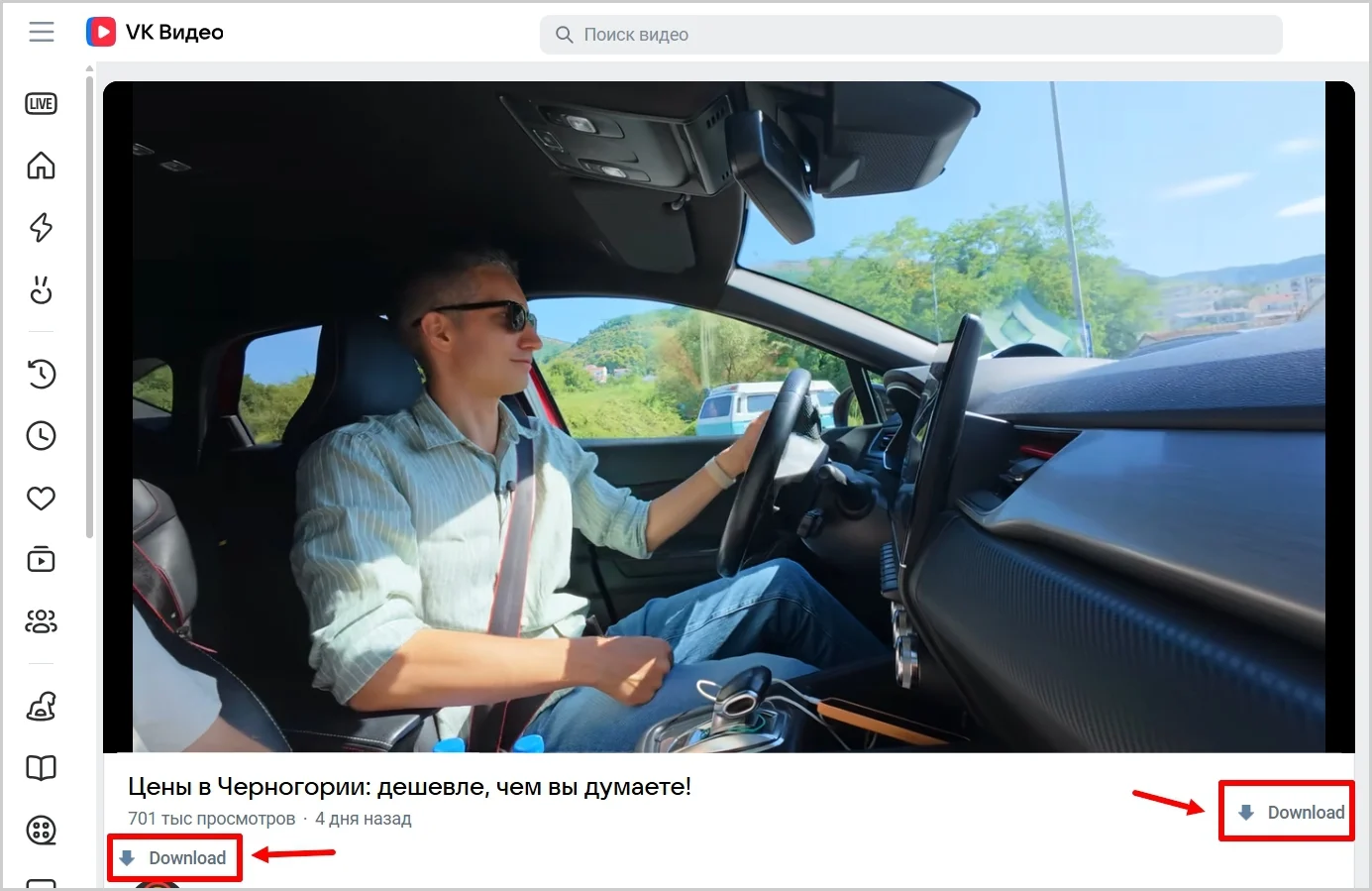 - Отыщите кнопку «Download» в VK Video. Их может быть и несколько.