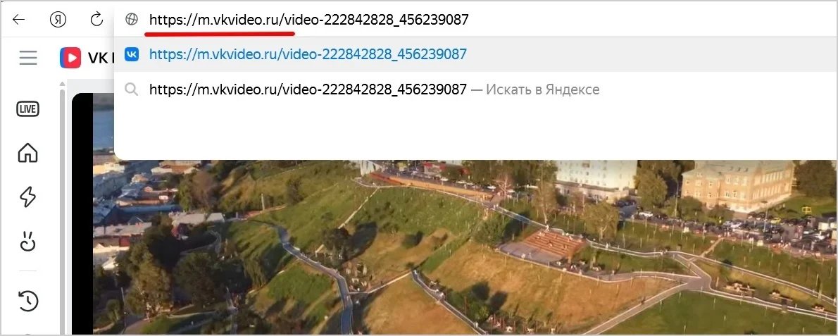 - Откройте видеоролик в браузере компьютера. В адресной строке измените URL — вставьте «m.» после «https://» (пример: https://m.vkvideo.ru/video-...). Нажмите Enter, чтобы открыть страницу в мобильной версии.