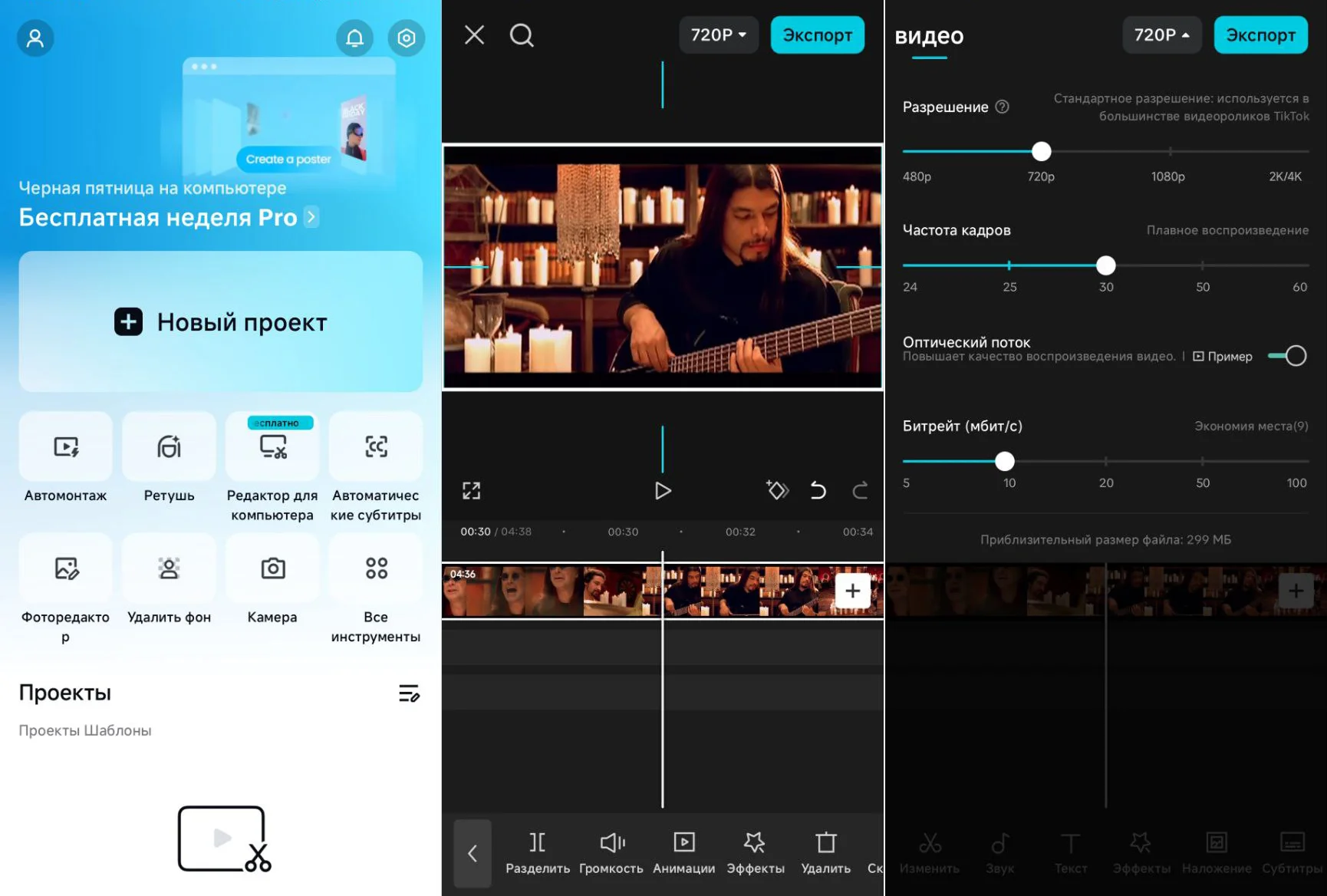 Один из самых популярных и функциональных бесплатных мобильных видеоредакторов для Android и iOS. Хотя его основная задача — монтаж, он также является мощным инструментом для контроля за размером на этапе экспорта.