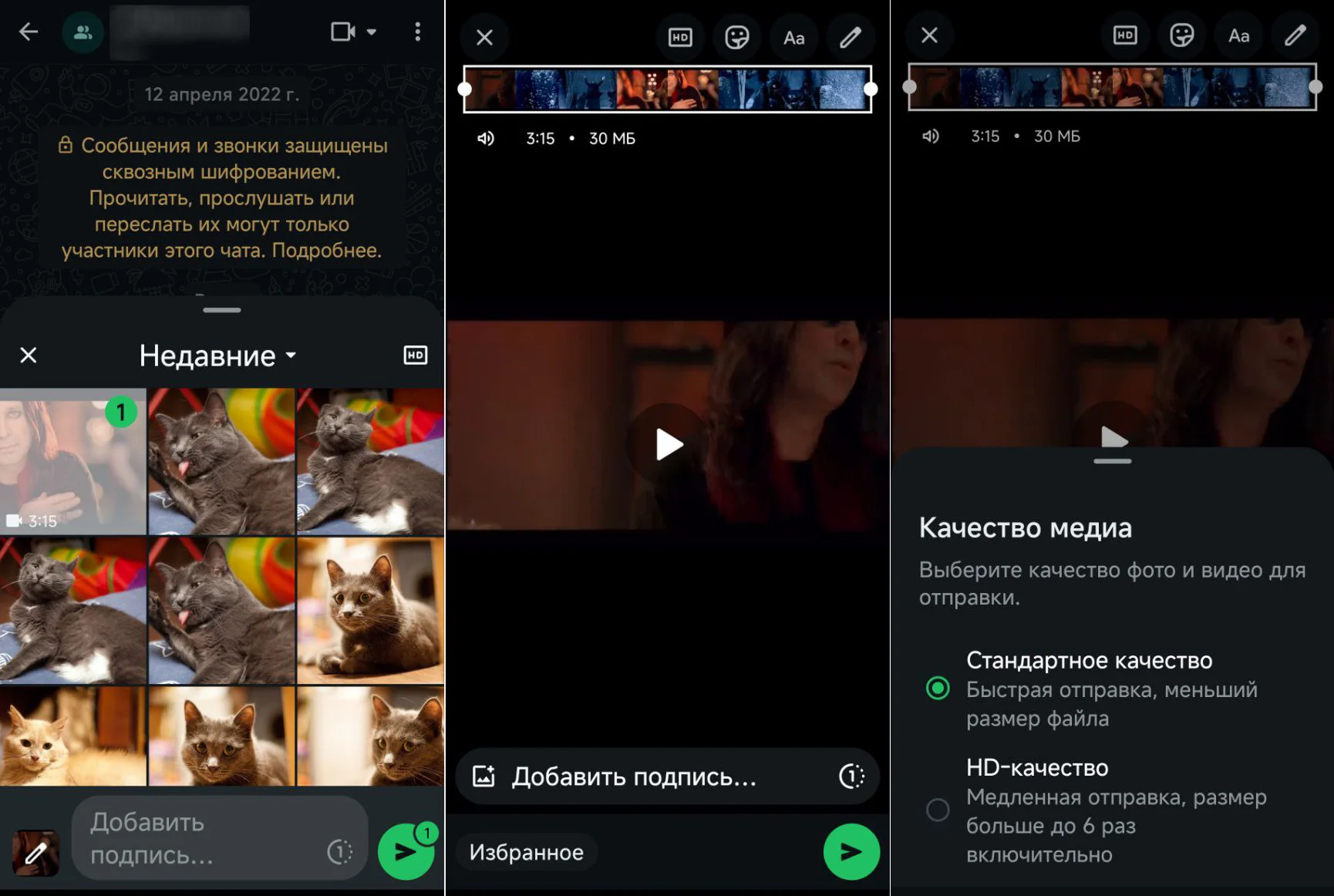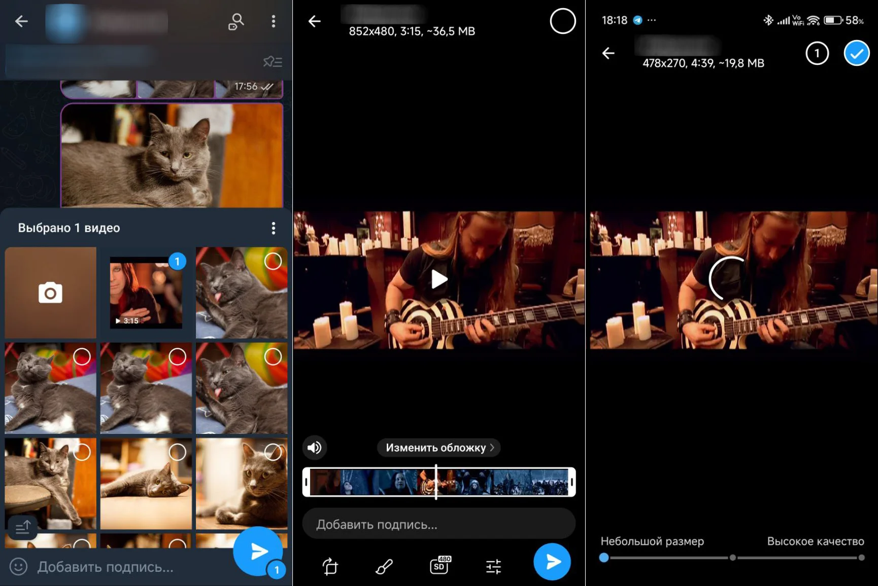 Оба популярных мессенджера позволяют подготовить видеоролик к пересылке — оснащены встроенными редакторами, где можно скорректировать качество изображения, укоротить клип и оптимизировать объем.