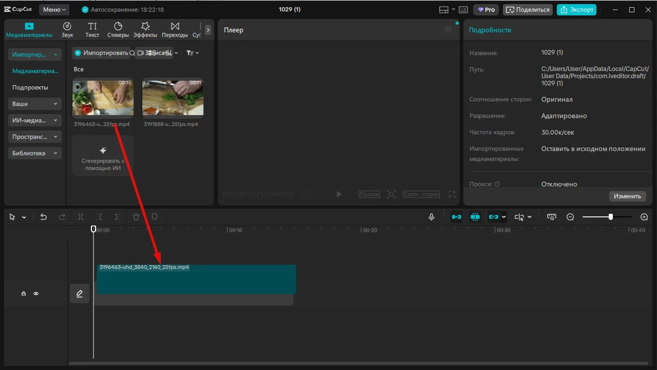 - Кликните на «Импортировать». Выберите файлы на жестком диске или перетащите из окна проводника в рабочую область.