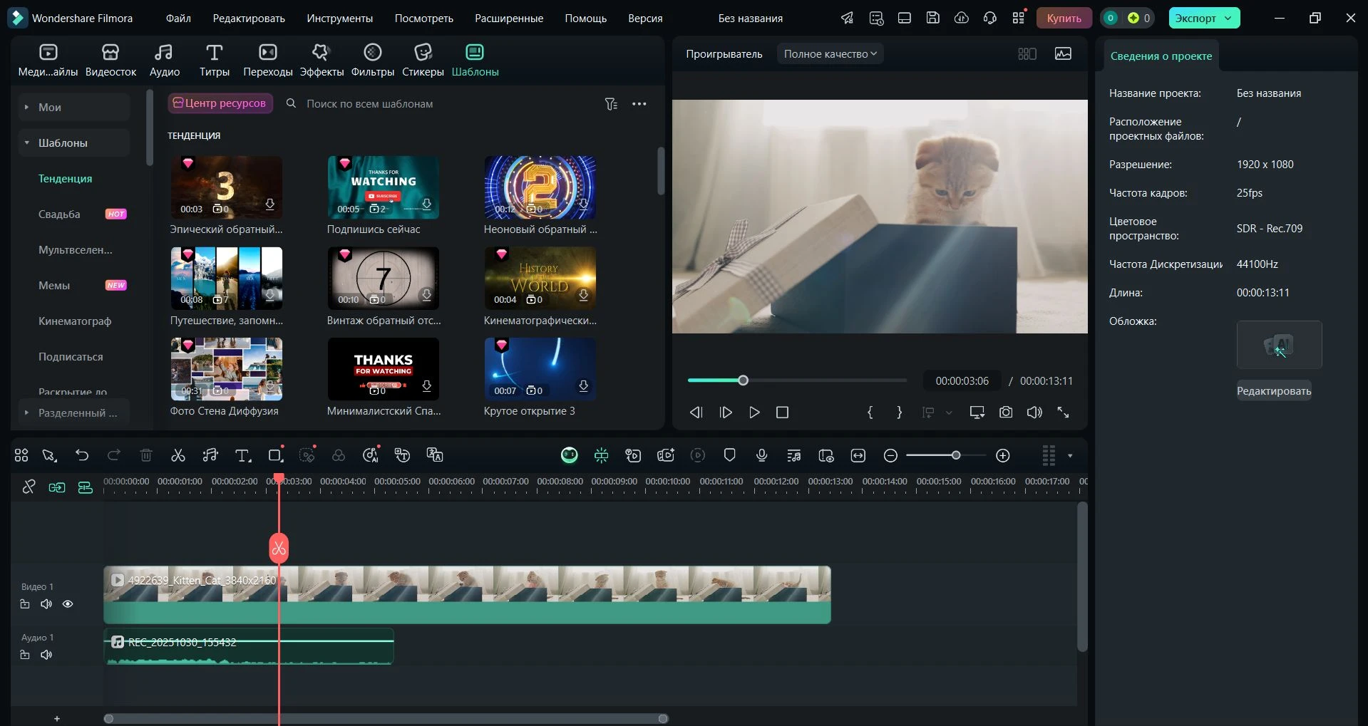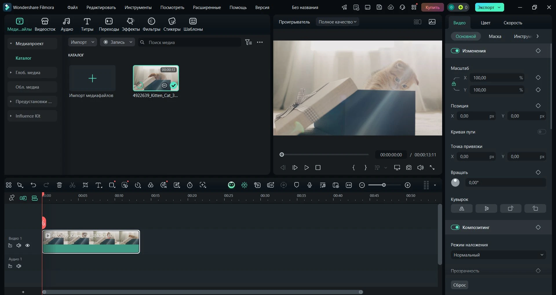 Бесплатная версия предоставляет доступ к AI-инструментам вроде автосубтитров и удаления фона, а также к большой коллекции видеоэффектов и фильтров.