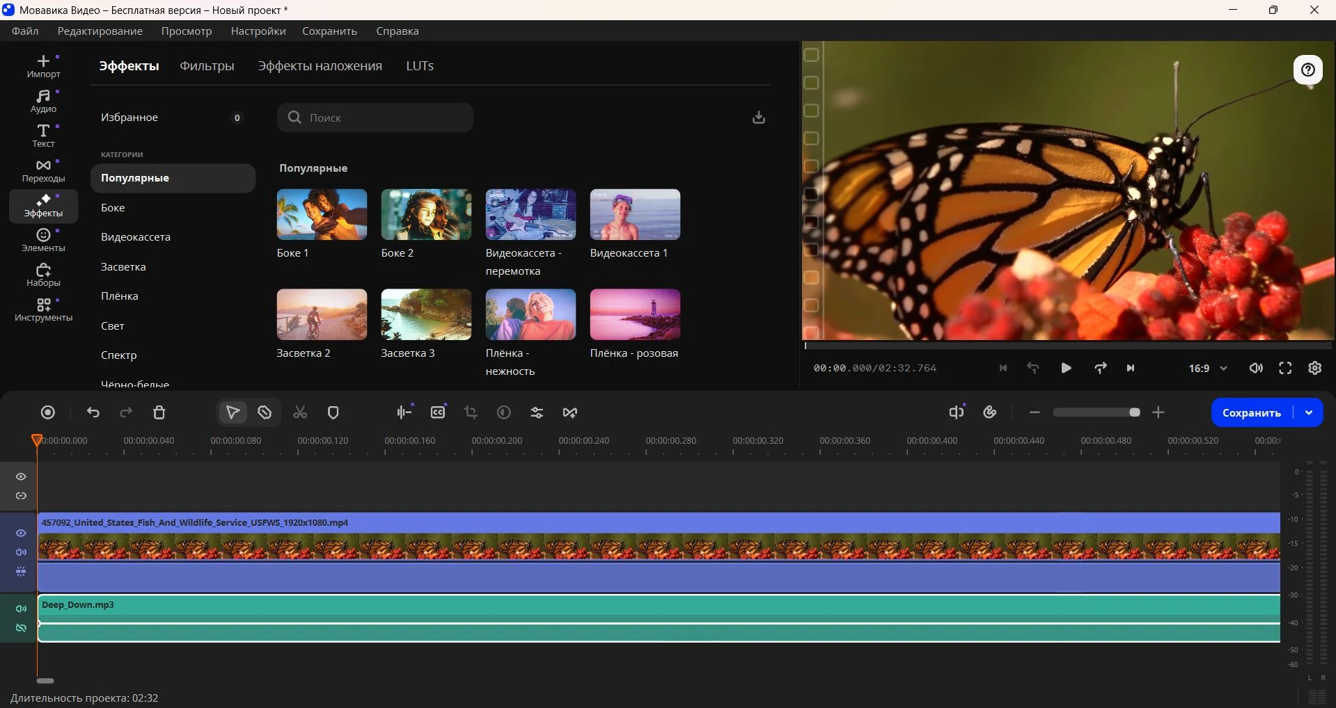 Мовавика Видео — это инструмент для редактирования мультимедиа, позволяющий без труда повернуть видео, улучшать их качество и обрабатывать: добавлять заголовки, переходы, фильтры и многое другое.
